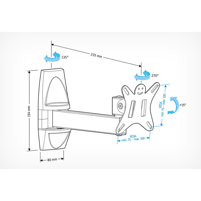 Особенности кронштейна крепления позволяют изменять углы наклона или поворота проектора и делать таким образом просмотр любимых телепередач или кинофильмов более комфортным и удобным. Holder LCDS-5004 изготовлен из прочного металлического сплава.