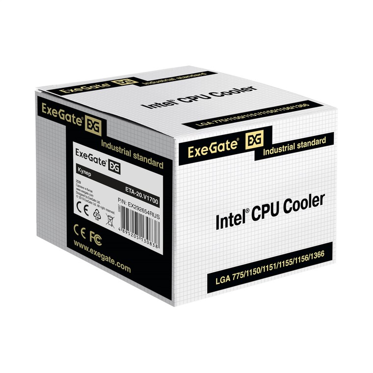 Кулер для ПК изготовлен из качественных, современных материалов. Конструкция кулера позволяет ExeGate ETA-20.V1700 легко выполнять монтаж устройства. Для изготовления радиатора модели использован алюминий. Количество вентиляторов использованных в конструкции кулера ExeGate ETA-20.V1700 - 1. Представленная модель совместима с Socket - LGA1150/LGA1151/LGA1155/LGA1156/LGA1200/LGA1366/LGA1700.