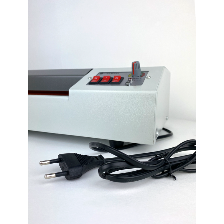 Представленная модель способна работать с плёнкой максимального формата до А3 и толщиной от 60 до 250 мкм. Благодаря небольшим размерам ламинатор не занимает много места и может использоваться в быту и небольших по площади помещениях. Для предупреждения пользователя об окончании процесса ламинирования в представленной модели предусмотрено звуковое и световое оповещение.