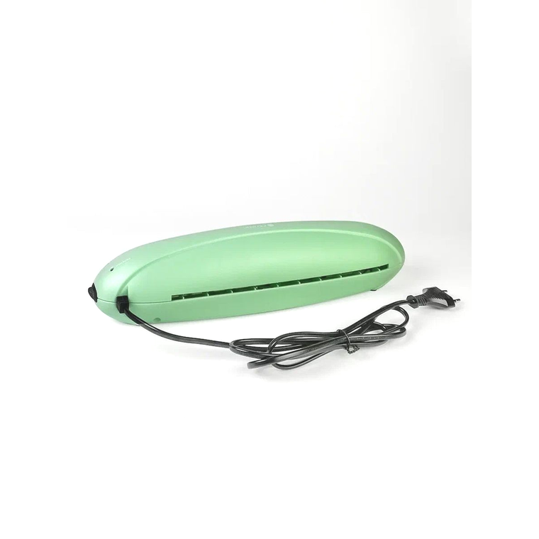 Представленная модель способна работать с плёнкой максимального формата до А4 и толщиной от 75 до 150 мкм. Благодаря небольшим размерам ламинатор не занимает много места и может использоваться в быту и небольших по площади помещениях. Для предупреждения пользователя об окончании процесса ламинирования в представленной модели предусмотрено звуковое и световое оповещение.