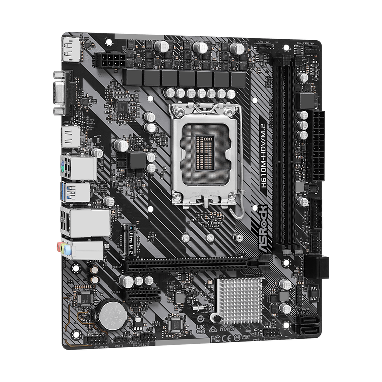 Купить материнскую плату под другие компьютерные комплектующие достаточно просто. Материнская плата ASRock H610M-HDV/M.2 R2.0 оснащена LGA1700 разъёмом для установки процессоров, а также чипсетом Intel H610. Для установки модулей оперативной памяти в конструкции платы представлено 2 слота, при этом максимальный объём «оперативки» может достигать 64 гигабайт. В конструкции платы представлены все необходимые слоты и разъёмы для установки и подключения компьютерных комплектующих, таких как жёсткий диск, оптический накопитель, различные типы контроллеров.