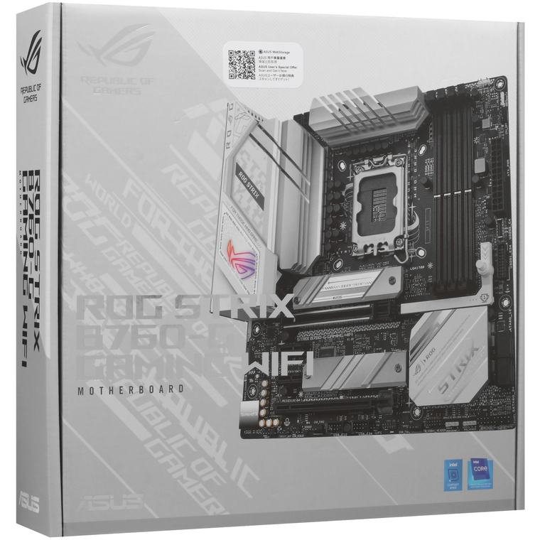 Купить материнскую плату под другие компьютерные комплектующие достаточно просто. Материнская плата Asus ROG STRIX B760-G GAMING оснащена LGA1700 разъёмом для установки процессоров, а также чипсетом Intel B760. Для установки модулей оперативной памяти в конструкции платы представлено 4 слота, при этом максимальный объём «оперативки» может достигать 192 гигабайт. В конструкции платы представлены все необходимые слоты и разъёмы для установки и подключения компьютерных комплектующих, таких как жёсткий диск, оптический накопитель, различные типы контроллеров.