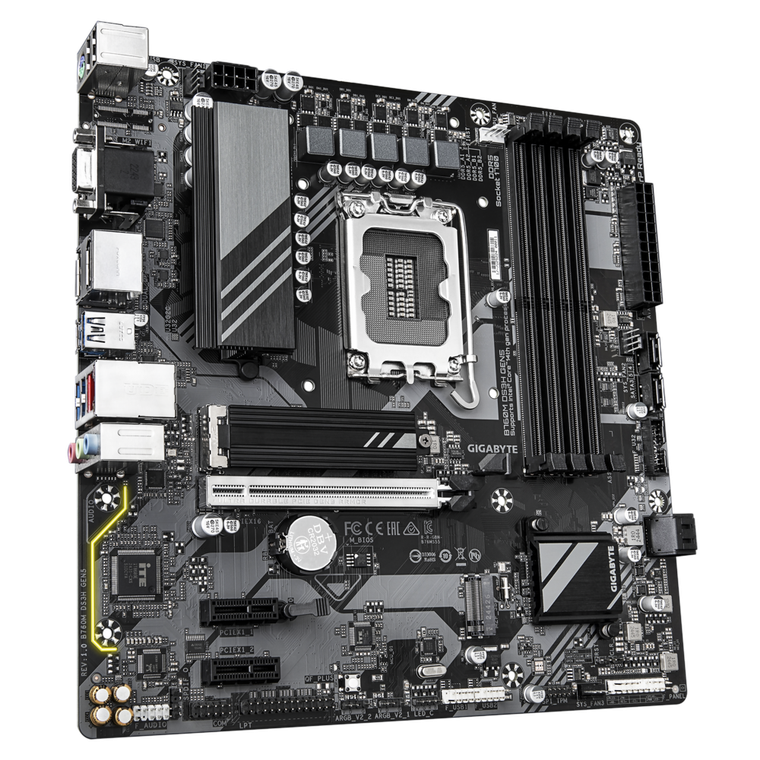 Купить материнскую плату под другие компьютерные комплектующие достаточно просто. Материнская плата GigaByte B760M DS3H GEN5 оснащена LGA1700 разъёмом для установки процессоров, а также чипсетом Intel B760. Для установки модулей оперативной памяти в конструкции платы представлено 4 слота, при этом максимальный объём «оперативки» может достигать 256 гигабайт. В конструкции платы представлены все необходимые слоты и разъёмы для установки и подключения компьютерных комплектующих, таких как жёсткий диск, оптический накопитель, различные типы контроллеров.