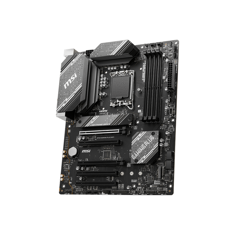 Купить материнскую плату под другие компьютерные комплектующие достаточно просто. Материнская плата MSI B760 GAMING PLUS WIFI оснащена LGA1700 разъёмом для установки процессоров, а также чипсетом Intel B760. Для установки модулей оперативной памяти в конструкции платы представлено 4 слота, при этом максимальный объём «оперативки» может достигать 256 гигабайт. В конструкции платы представлены все необходимые слоты и разъёмы для установки и подключения компьютерных комплектующих, таких как жёсткий диск, оптический накопитель, различные типы контроллеров.