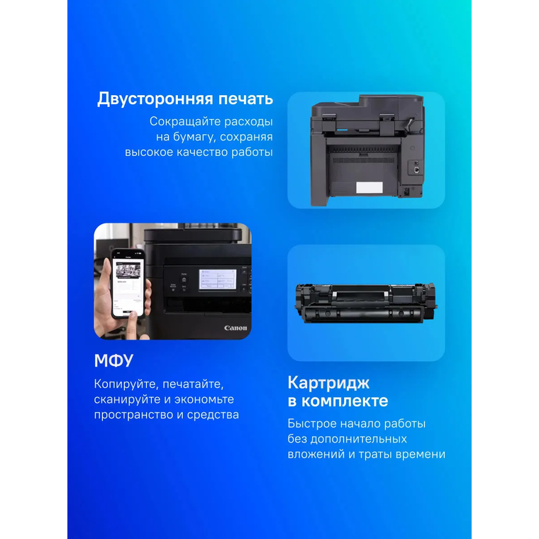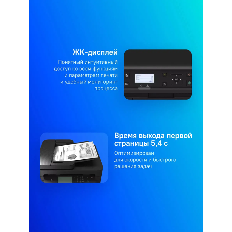 Вы можете купить лазерный МФУ и не бояться за качество печати. Плотность используемой для печати документов бумаги может достигать 163 гр на м2.