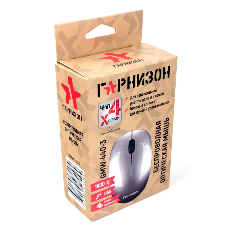 Гарнизон GMW-440-3 это удобная в использовании, чувствительная и надёжная в работе беспроводная оптическая мышь с помощью которой вы легко сможете управлять работой компьютера.