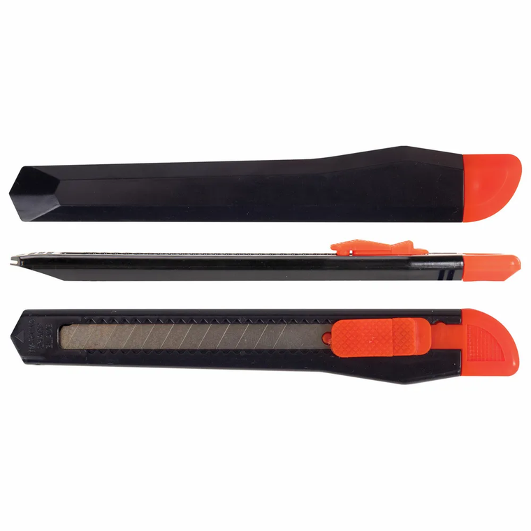 В представленной модели могут использоваться лезвия шириной до 9 миллиметров. Конструктивно представленная модель состоит из лезвия и рукоятки. В конструкции канцелярского ножа использовано выдвижное лезвие, что позволит вам регулировать длину режущего полотна. Лезвие не нуждается в заточке, так как разделено на несколько сегментов.