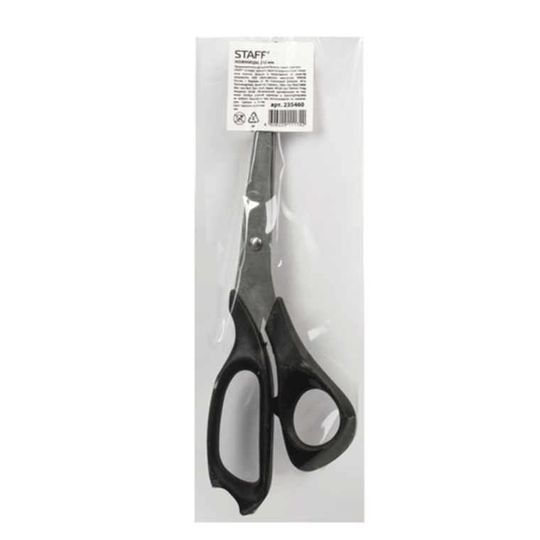 Кромки лезвий отлично заточены, что позволяет с высокой точностью и эффективностью резать различные материалы. Длина лезвия ножниц составляет 21 сантиметров. Руки ножниц изготовлены из качественно пластика, имеют эргономичную форму и крашены в черный цвет.