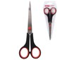 Кромки лезвий отлично заточены, что позволяет с высокой точностью и эффективностью резать различные материалы. Длина лезвия ножниц составляет 17 сантиметров. Руки ножниц изготовлены из качественно пластика, имеют эргономичную форму и крашены в черный/красный цвет.