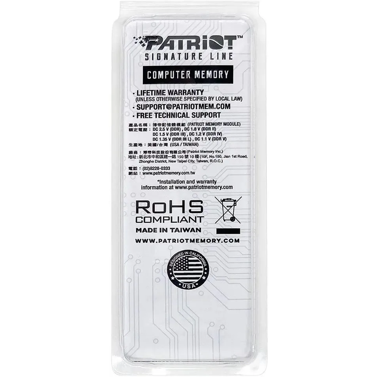 Цена оперативной памяти указана на данной странице. Пропускная способность модуля составляет 38400 Мб/сек, что позволяет оперативной памяти обрабатывать большее количество информации за единицу времени. Благодаря отличным показателям частоты и пропускной способности оперативная память Patriot PSD516G480081S обеспечивает компьютеру максимальную производительность и быстродействие. Объем памяти представленной модели составляет 16 Гб.