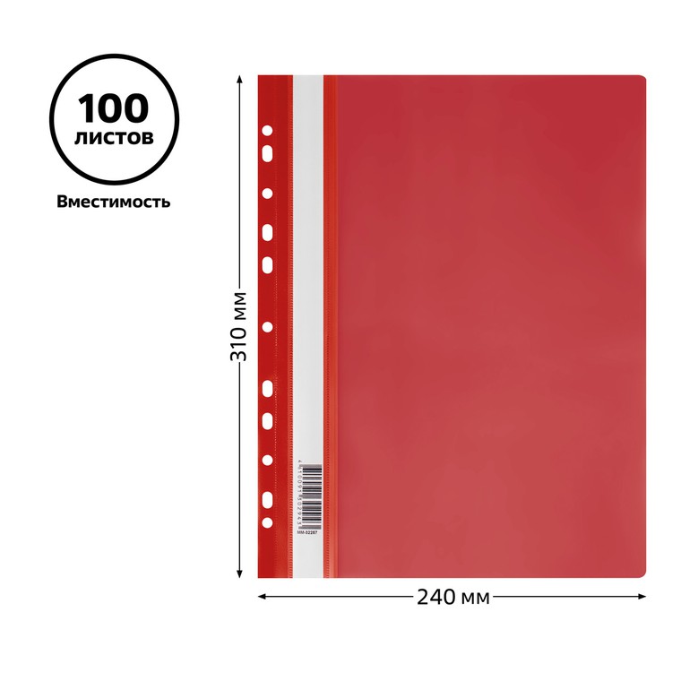Папка-скоросшиватель пластик. перф. СТАММ А4, 160мкм, красная с прозр. верхом ММ-32257