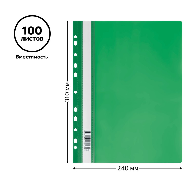 Папка-скоросшиватель пластик. перф. СТАММ А4, 160мкм, зеленая с прозр. верхом ММ-32256