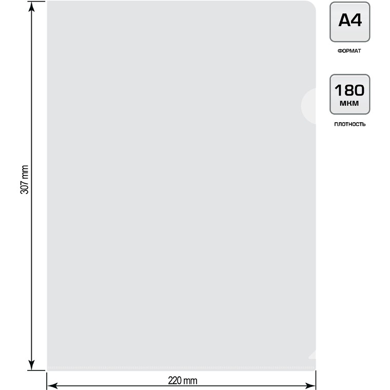 Для хранения документации в папке предусмотрено 1 отделений. Ширина корешка папки составляет миллиметров. Обложка изготовлена из прочного материала и окрашена в прозрачный цвет.