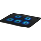 Подставка под ноутбук ориентирована на ноутбуки с максимальным размером экрана в 15 дюймов по диагонали. Подставка имеет классический дизайн, окрашена в черный цвет и хорошо смотрится на рабочем столе, гармонично дополняя дизайн помещения. Во время работы гаджета используется активное охлаждение. Вентиляторы используемые в системе охлаждения обеспечивают равномерное охлаждение всей поверхности ноутбука. Корпус подставки изготовлен из прочных и качественных материалов, что значительно повышает срок её эксплуатации.