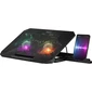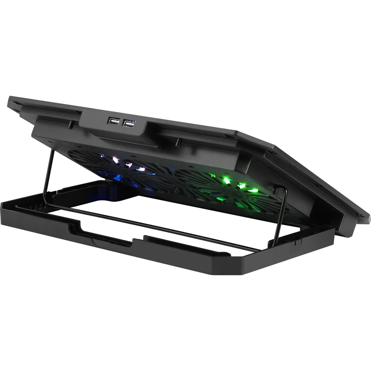 Подставка под ноутбук ориентирована на ноутбуки с максимальным размером экрана в 15 дюймов по диагонали. Подставка имеет классический дизайн, окрашена в черный цвет и хорошо смотрится на рабочем столе, гармонично дополняя дизайн помещения. Во время работы гаджета используется активное охлаждение. Вентиляторы используемые в системе охлаждения обеспечивают равномерное охлаждение всей поверхности ноутбука. Корпус подставки изготовлен из прочных и качественных материалов, что значительно повышает срок её эксплуатации.