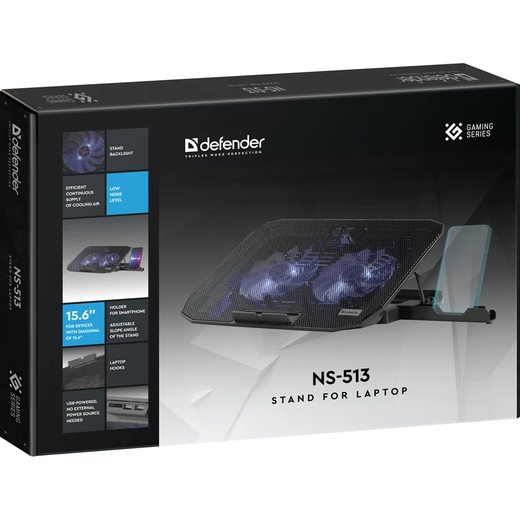 Подставка для ноутбука является незаменимым аксессуаром. Не секрет, что во время работы ноутбук сильно греется и от эффективности его охлаждения напрямую зависит производительность устройства. Подставка для ноутбука Defender NS-513 предназначена для отвода излишков тепла, возникающих во время работы ноутбука и поможет вам значительно увеличить срок службы и производительность техники.