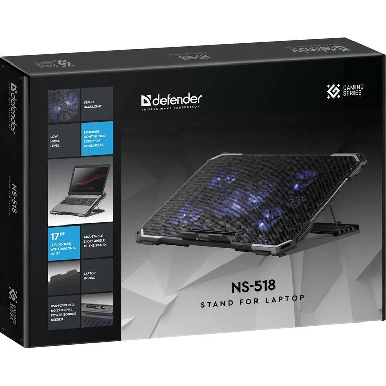 Подставка для ноутбука является незаменимым аксессуаром. Не секрет, что во время работы ноутбук сильно греется и от эффективности его охлаждения напрямую зависит производительность устройства. Подставка для ноутбука Defender NS-518 предназначена для отвода излишков тепла, возникающих во время работы ноутбука и поможет вам значительно увеличить срок службы и производительность техники.