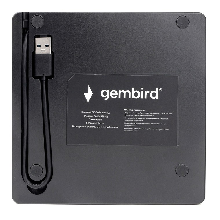 Сам корпус имеет небольшие размеры, может похвастаться строгим лаконичным дизайном и окрашен в черный цвет. С помощью Gembird DVD-USB-03C вы сможете считывать информацию с оптических дисков, установить игру, программу или приложение, просмотреть кинофильм, прослушать любимый музыкальный альбом, а также записывать данные с высокой скоростью.