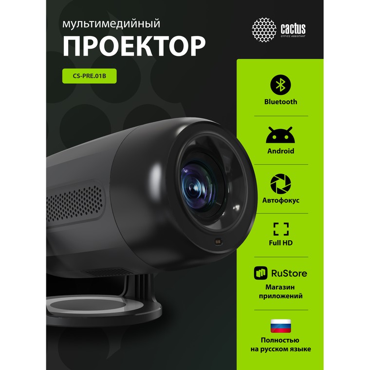 Небольшой по размерам, лёгкий, функциональный и надёжный в использовании проектор Cactus CS-PRE.01B в одно мгновение превратит вашу комнату в настоящий кинозал. С этим устройством вы сможет просматривать новинки кино индустрии и развлекаться.