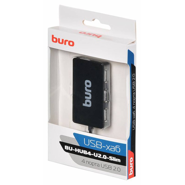 Разветвитель Buro BU-HUB4-U2.0-SLIM, черный