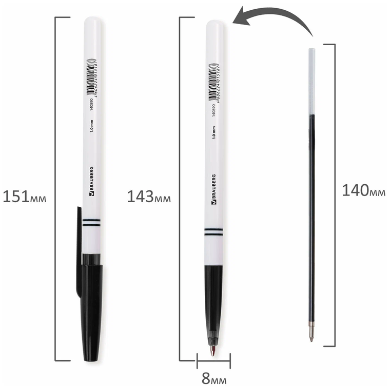 Чернила используемые в составе ручки Brauberg "Офисная" не токсичны, обеспечивают точную передачу цвета, быстро высыхают, не оставляют помарок на бумаге и обладают высокой устойчивостью к воздействию влаги и солнечного света. Шариковая ручка Brauberg "Офисная" это ещё и неплохой подарок для вашего коллеги по работе.