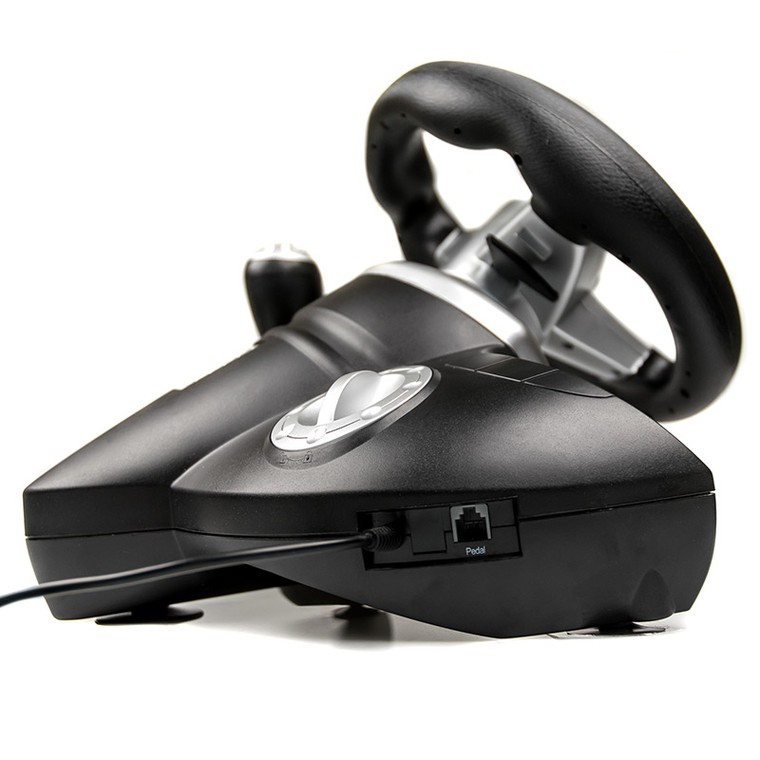 В состав комплекта входит 2 педали, что позволит добиться ещё более высокой реалистичности игрового процесса. По своей форме аксессуар полностью идентичен настоящему рулевому колесу автомобиля. Угол поворота Dialog GW-155VR составляет 270. Девайс совместим с игровыми платформами - PC.