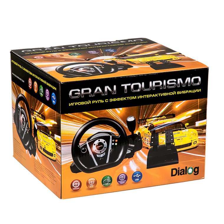 Игровой руль Dialog Gran Tourismo это простой в подключении, настройке и управлении, функциональный аксессуар с помощью которого вы сможете добиться более высокой реалистичности компьютерной игры. Это настоящий подарок для любителей автомобильных симуляторов.