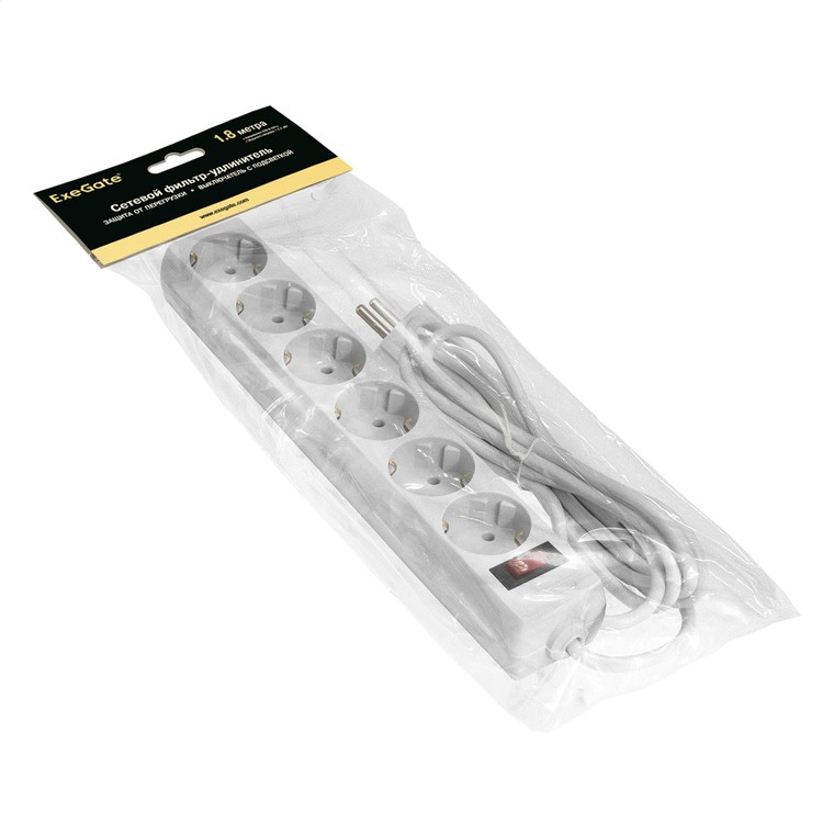 Сетевой фильтр Сетевой фильтр Удлинитель ExeGate SP-6-1.8W EX221172RUS – это устройство, которое используется для защиты компьютерной и другой электронной техники от повреждения, вызванного перенапряжениями, короткими замыканиями и другими проблемами с электроснабжением. Количество розеток 6. Длина кабеля 1.8 м.