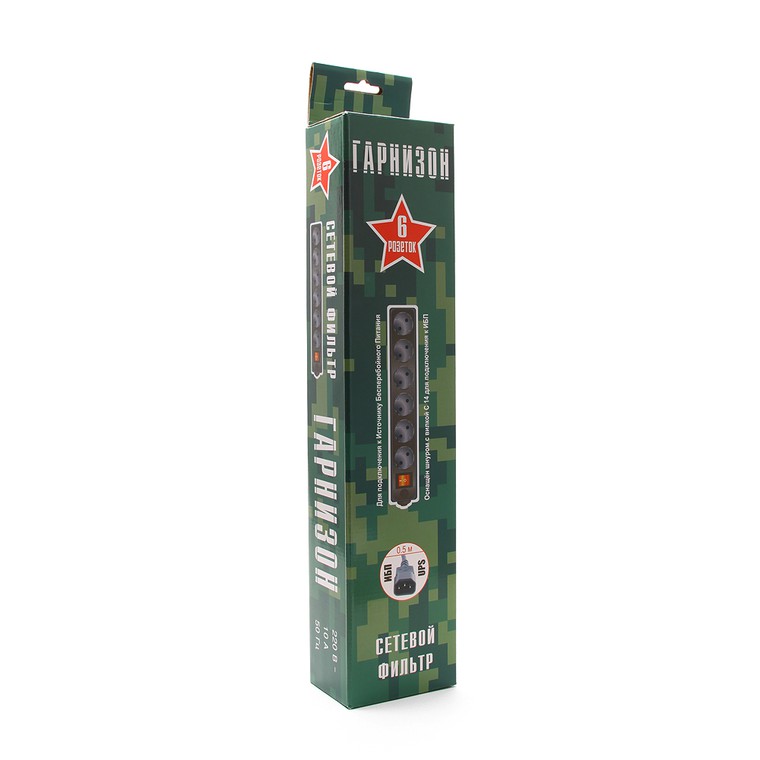 Сетевой фильтр Сетевой фильтр EURO Гарнизон ЕНB-0 ЕНB-0 – это устройство, которое используется для защиты компьютерной и другой электронной техники от повреждения, вызванного перенапряжениями, короткими замыканиями и другими проблемами с электроснабжением. Количество розеток 6. Длина кабеля 0.5 м.
