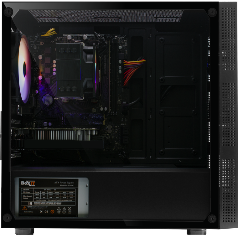 Цена игрового компьютера достаточно бюджетная и демократичная, чтобы его мог себе позволить каждый. Для подключения компьютерной клавиатуры, мыши и прочих периферийных устройств в составе блока имеются интерфейсы HDMI/RJ-45/USB 2.0/USB 3.2/Разъем микрофона/Разъем наушников. Корпус системного блока имеет приятный дизайн, который легко впишется в любой интерьер, а его форм-фактор позволяет получать лёгкий и удобный доступ пользователя к внутренним компонентам.
