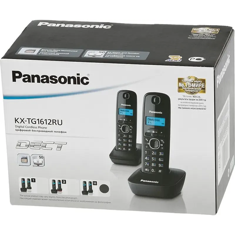 Возможности телефона Panasonic KX-TG1612RUH расширены за счёт наличия в нём телефонной книги и определителя номера. При необходимости возможно подключение к базе телефона дополнительных беспроводных трубок. Для электропитания базы Panasonic KX-TG1612RUH используется бытовая электрическая сеть. Корпус модели окрашен в темно-серый и изготовлен из прочного пластика.