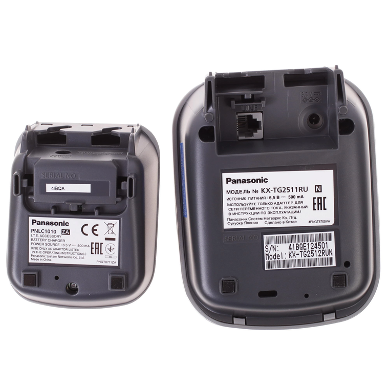 Возможности телефона Panasonic KX-TG2512RUN расширены за счёт наличия в нём телефонной книги и определителя номера. При необходимости возможно подключение к базе телефона дополнительных беспроводных трубок. Для электропитания базы Panasonic KX-TG2512RUN используется бытовая электрическая сеть. Корпус модели окрашен в платиновый и изготовлен из прочного пластика.