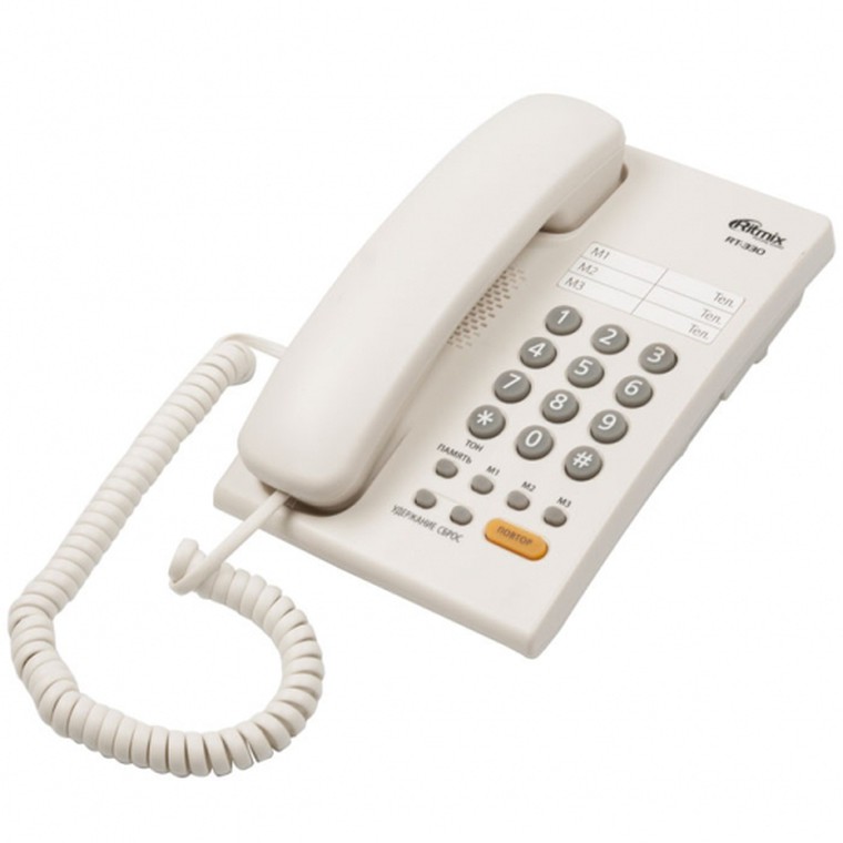 Для размещения в вертикальном положении на обратной стороне корпуса расположены отверстия для крепления винтов. Для набора номера вызываемого абонента на корпусе проводного телефона Ritmix RT-330 есть кнопки, изготовленные из прочного пластика.
