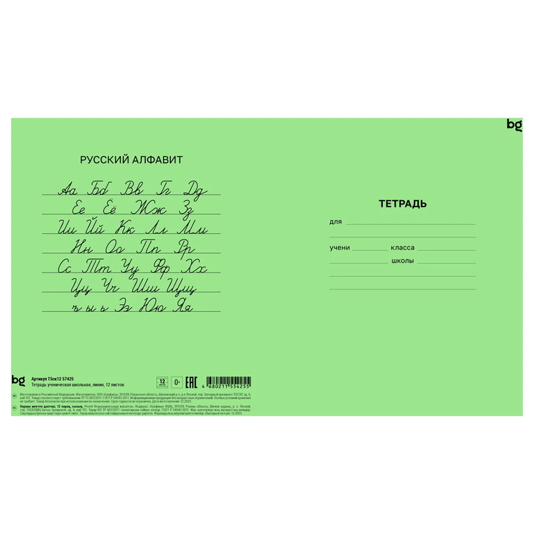 Листы тетради BG Т5ск12 57425 надёжно скреплены и защищены от внешних воздействий обложкой. Формат страниц представленной вашему вниманию тетради BG Т5ск12 57425 - А5.