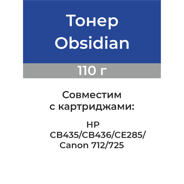 Пользователи лазерных принтеров без сомнений знают, что одним из самых важных компонентов картриджа является тонер. От используемого тонера напрямую зависит качество печати. Тонер Obsidian OB-HPIT3-110 - это высококачественный тонер совместимый с моделями картриджей CB435A, CRG 712.