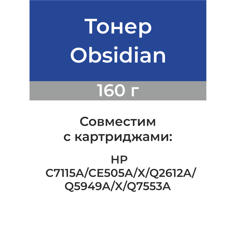 Пользователи лазерных принтеров без сомнений знают, что одним из самых важных компонентов картриджа является тонер. От используемого тонера напрямую зависит качество печати. Тонер Obsidian OB-HPSC1-160 - это высококачественный тонер совместимый с моделями картриджей Q2612A, CRG 703.