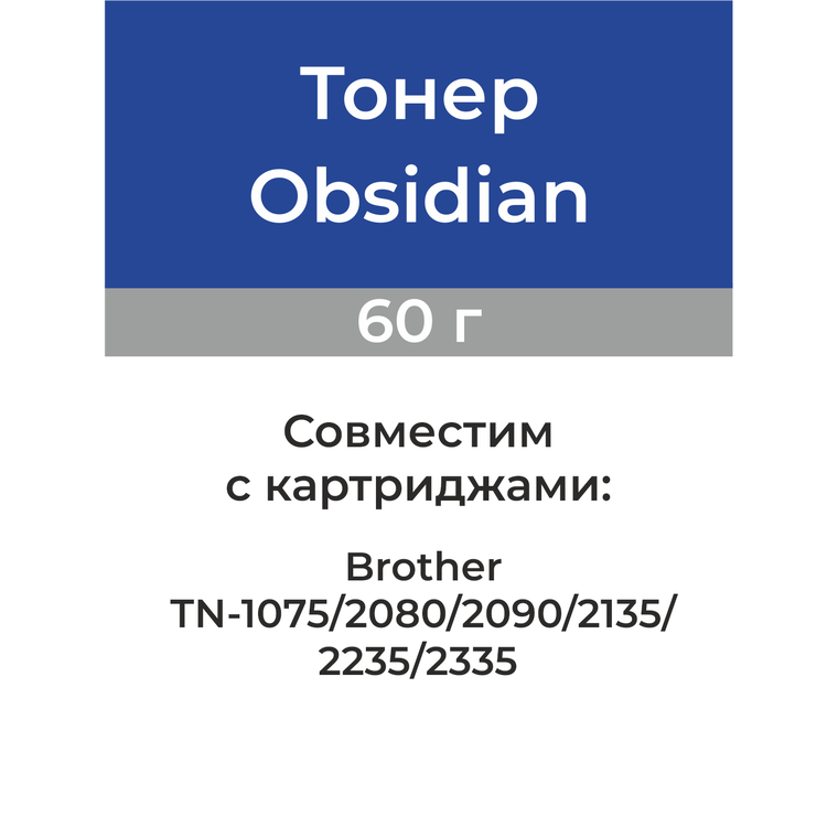 Пользователи лазерных принтеров без сомнений знают, что одним из самых важных компонентов картриджа является тонер. От используемого тонера напрямую зависит качество печати. Тонер Obsidian OB-BRBW1-60 - это высококачественный тонер совместимый с моделями картриджей Brother TN-1075/2080/2090/2135/2235/2335 Brother MFC-L2720DW, Brother HL-L2365DW, Brother HL-L2360DN, Brother HL-L2340DW, Brother MFC-L2740DW, Brother MFC-L2700DW, Brother DCP-L2560DW, Brother DCP-L2540DN, Brother DCP-L2520DW, Brother DCP-L2500D, Brother HL-L2300D.