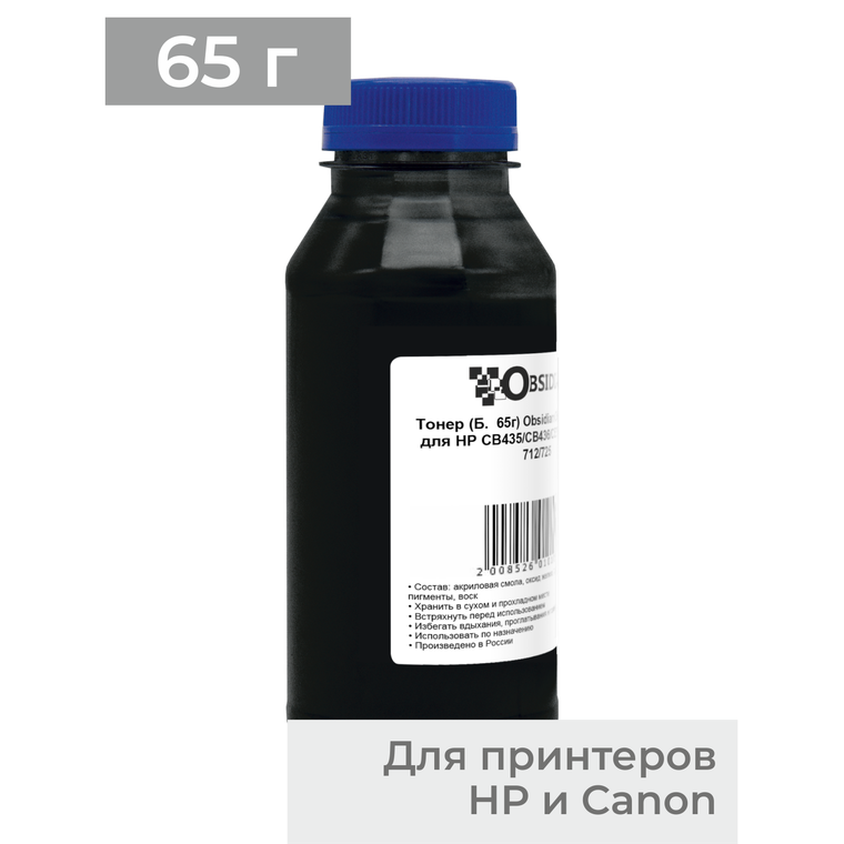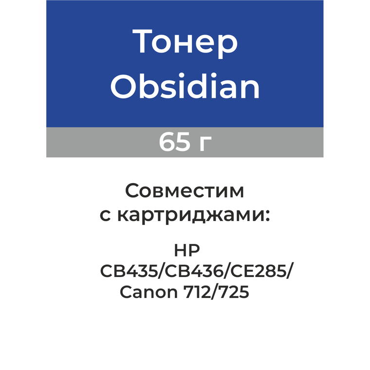 Пользователи лазерных принтеров без сомнений знают, что одним из самых важных компонентов картриджа является тонер. От используемого тонера напрямую зависит качество печати. Тонер Obsidian OB-HPIT3-65 - это высококачественный тонер совместимый с моделями картриджей CB435A, CRG 712.