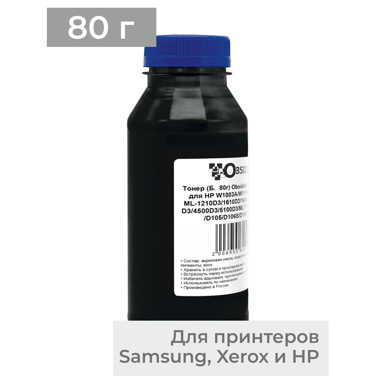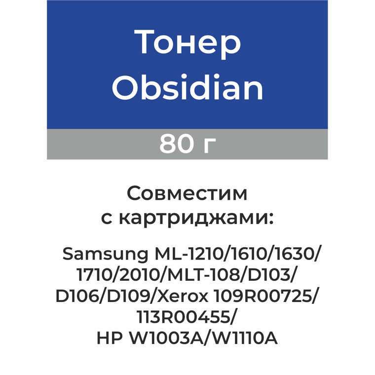 Пользователи лазерных принтеров без сомнений знают, что одним из самых важных компонентов картриджа является тонер. От используемого тонера напрямую зависит качество печати. Тонер Obsidian OB-SACM1-80 - это высококачественный тонер совместимый с моделями картриджей ML-1210D3.