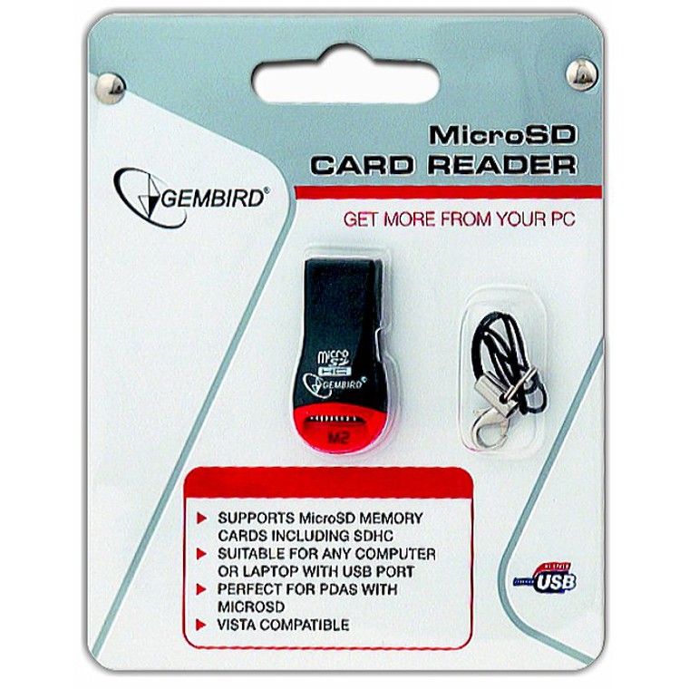 Gembird FD2-MSD-1 это простой и надёжный в использовании картридер предназначенный для считывания информации с внешних карт памяти форматов Memory Stick DUO, micro SD . Устройство разработано компанией Gembird являющейся одним из лидеров в области разработки и производства компьютерных аксессуаров.